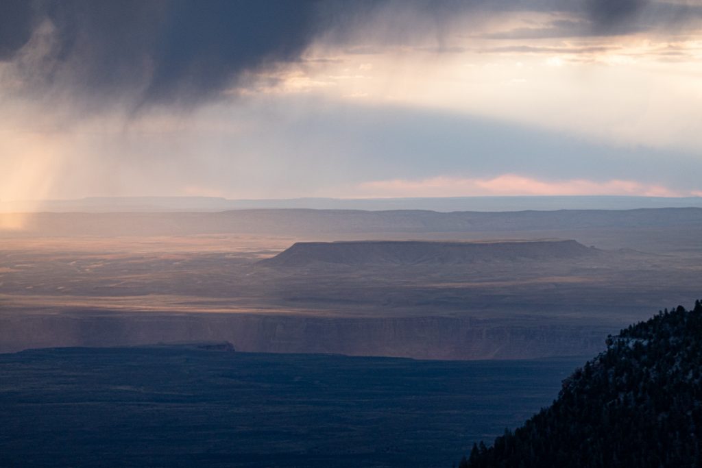 Ich frühstücke an einem Picknicktisch direkt am Canyonrand, danach ist es Zeit zum Aufbruch. Der Tag gibt für mich fotografisch nicht viel her – ich bleibe an wenig hängen. Das mag auch daran liegen, dass ich nach zwanzig Jahren Kindheit im Münsterland nun wirklich kein Regenfan mehr bin. Und daran, dass mir die Landschaft nur allzu bekannt vorkommt: Sanft welliges Land mit Mischwald. Für einen Wüstenbewohner muss das eine Offenbarung sein – als deutschem Mittelgebirgsbewohner sagt mir meine Mustererkennung, dass ich so etwas schon ziemlich oft gesehen habe: