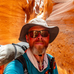 Links im Bild, im Schatten, der Wanderweg, der mich die letzten Meter nach unten führt. Und dann ist es geschafft: Ich bin am Northern Terminus angekommen, siehe das Bild ganz oben! Nach 1.300 Kilometern oder knapp 800 Meilen schließe ich zum ersten Mal einen Thru Hike eines Fernwanderweges ab. Und das Gefühl dabei ist – sehr antiklimaktisch. Ich bin an einem Ort, der Stateline Campground heißt. An der Grenze zwischen Arizona und Utah gelegen, ist dies ein Campingplatz, der vor allem von Autocampern genutzt wird. Eine Staubpiste führt hierher, es gibt ein paar feste Dächer, die Schatten bieten, Parkplätze, und ein paar Zeltplätze, sonst nichts. Noch nicht einmal Wasser. Und ich bin allein. Es ist noch nicht einmal jemand da, der ein Foto von mir machen könnte. Also ist mein Terminus-Bild ein Selfie mit ausgestrecktem Arm.